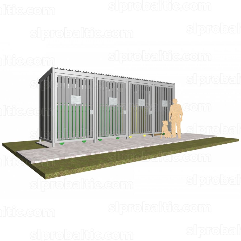 Standarta atkritumu konteineru novietņu risinājumus ar durvīm. Novietne paredzēta četriem lieliem konteineriem.
