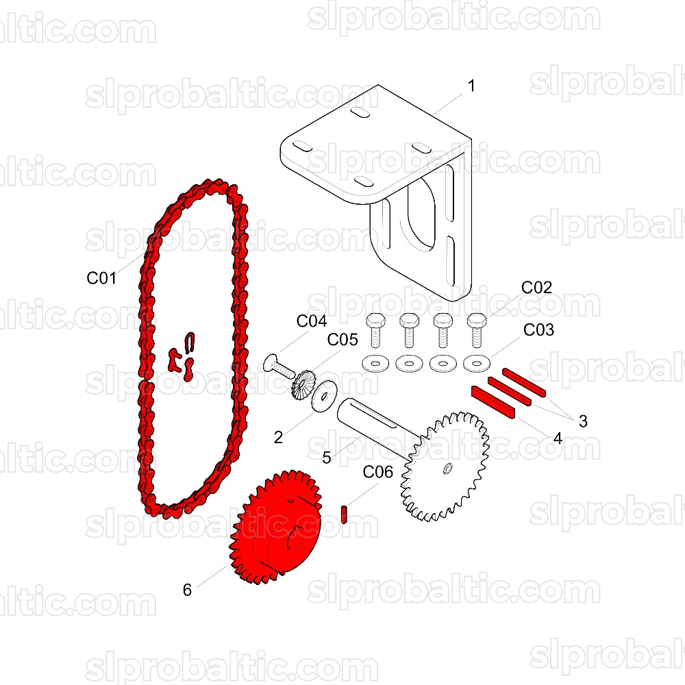 Komplektācija: kronšteins, zobrati, ķēde, skrūves.