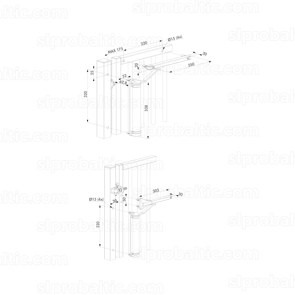 - Iekļauts sliežu komplekts - 90° un 180° atvēršanai
