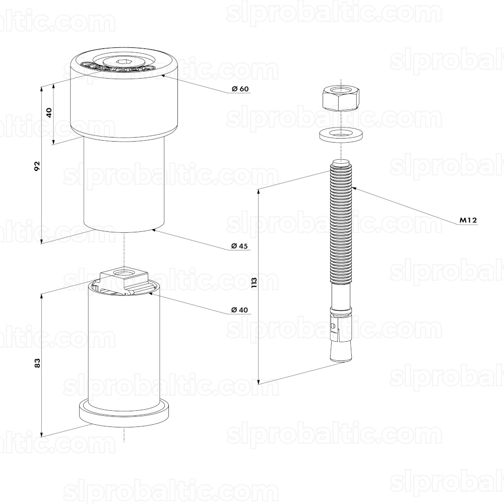 - Komplektā ietilpst M12 enkura skrūve betonam
