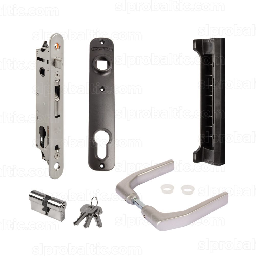 Komplektā: FORTYLOCK slēdzene (nerūsējošā tērauda), rokturi 3006J-H (alumīnija), cilindrs 3012-54-STD-VSZ, dekoratīvā uzlikās 3020-HYB-STD (poliamīda), prētplaksne SFKP-QF40 (poliamīda).