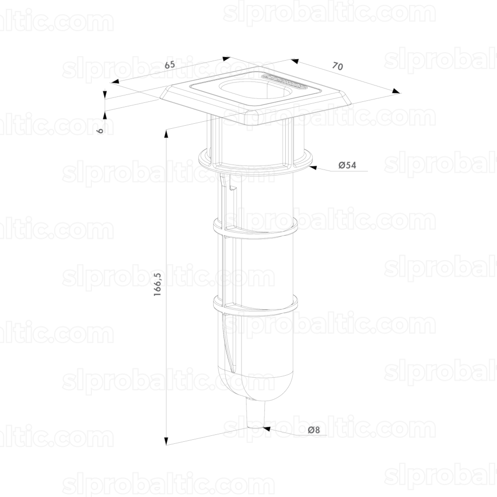 Gruntī iestrādājamā ligzda tapām ar maksimālo asi Ø20 mm. Ar drenāžas caurumu.
