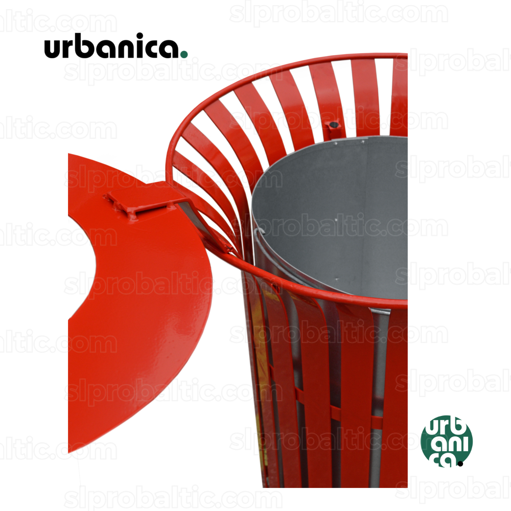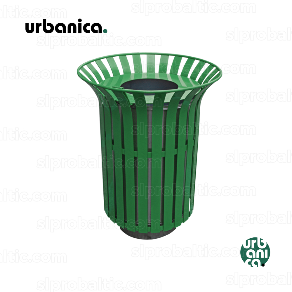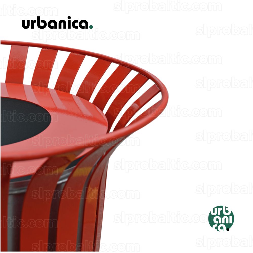 URBANICA Linden urnas pamats ir no nerusējoša terauda. Karkass: kārsti cinkots, pulverkrāsots tērrauds. Spainis izgatavots no cinkotas terauda loksnes, ir rokturis.