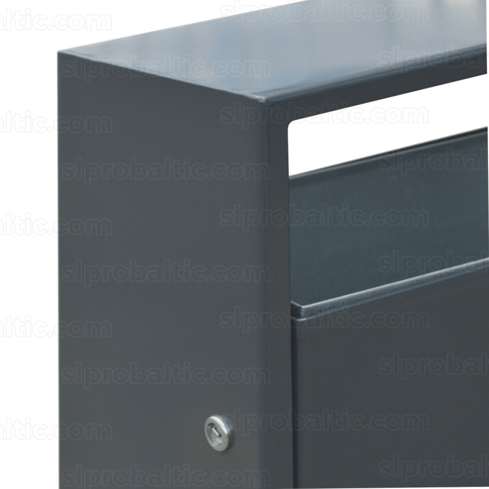 Modernā izskata atkritumu urna, kuras dizainu iedvēsmoja Skandināvijas lielpilsētu biznesa rajoni.