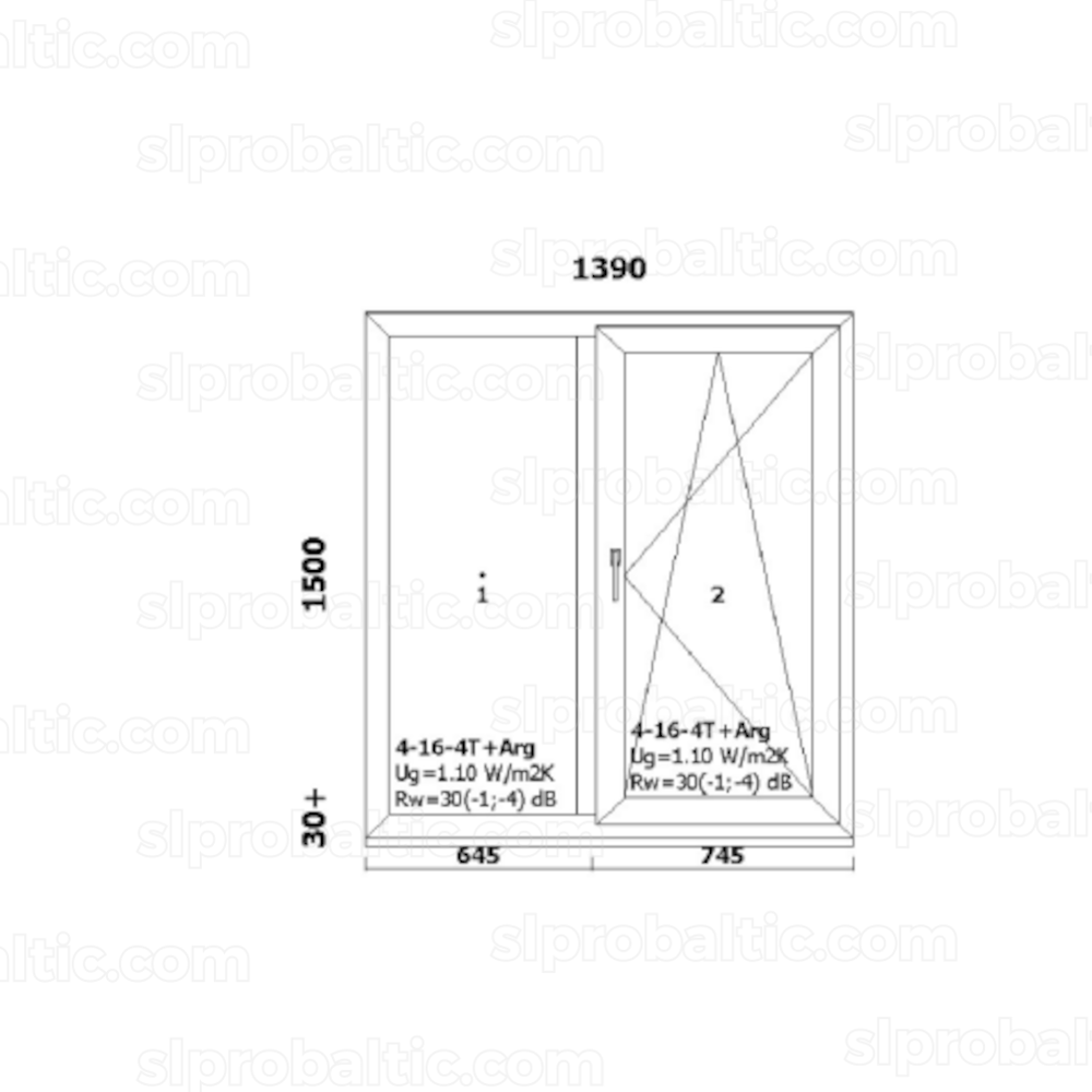 Divdaļīgs PVC logs GEALAN 8000 - izmērs 1390x1500