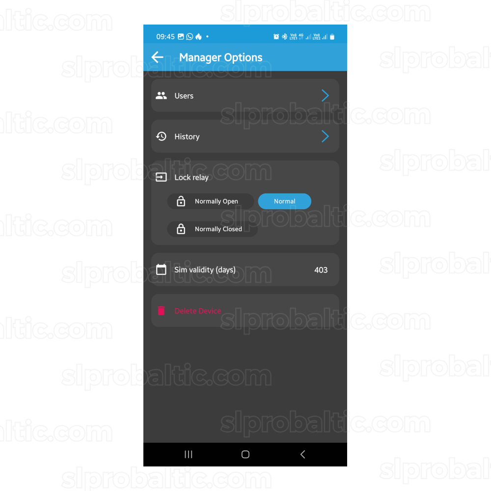 GSM modulis ar iespēju aktivizēt automātiku caur aplikāciju.