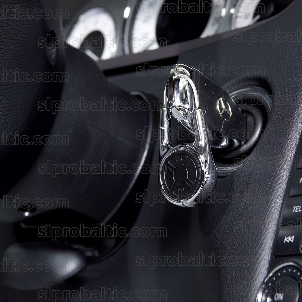 Alumīnija izskatā, ar 2 taustiņu funkcijām, izmantojama arī ka atslēgas piekariņš.