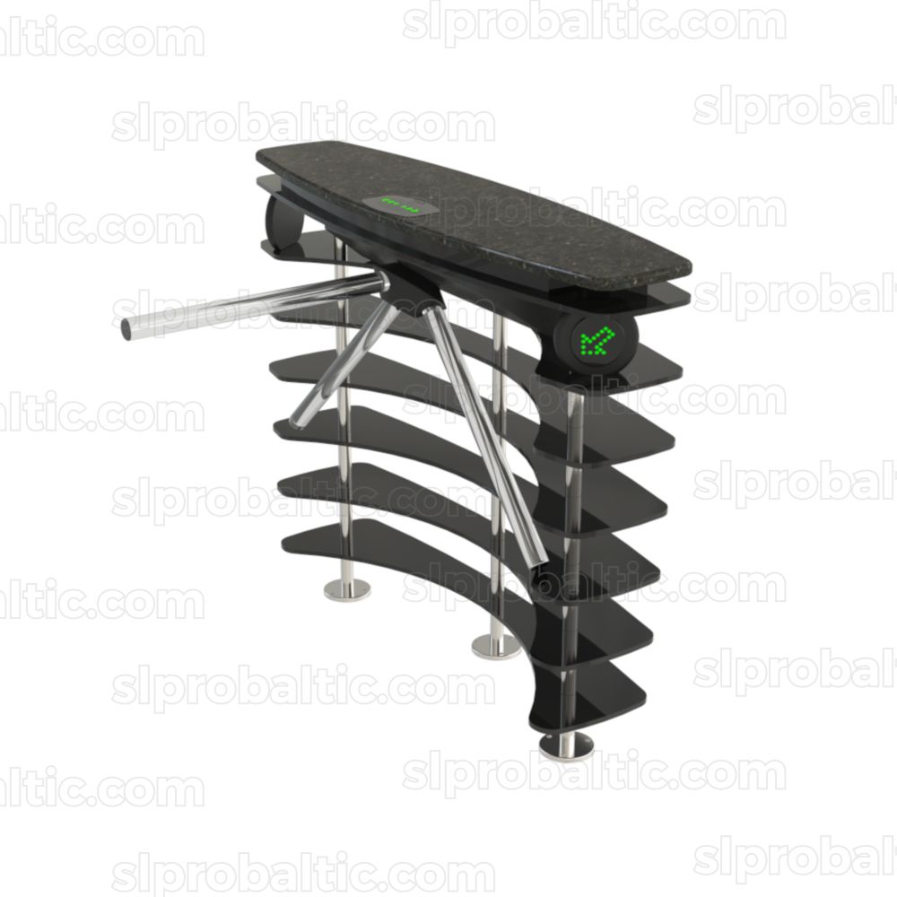 OZAK FKR777 divpusējs elektomehāniskais turnikets, kas izgatavots no granīta akmeņa (korpusa augšpusē) un puscaurspīdīgiem akrila paneļiem (korpusa apakšpusē), komplektā ar vadības paneli un LED virziena indikātoriem. Iestatījumu maiņa notiek izmantojot mobīlo aplikāciju. Automātiska ieejās atbloķēšana ārkārtas strāvas padeves pārtraukuma laikā. Turnikets ir paredzēts, lai regulētu un kontrolētu piekļuvi vietās ar intensīvu cilvēku plūsmu. Turnikets ir pilnībā savietojams ar visām piekļuves kontroles sistēmām.